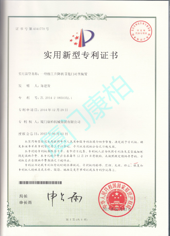 吊笼门对重装置