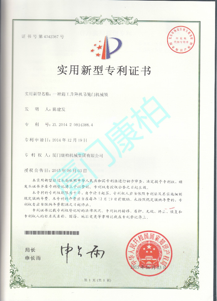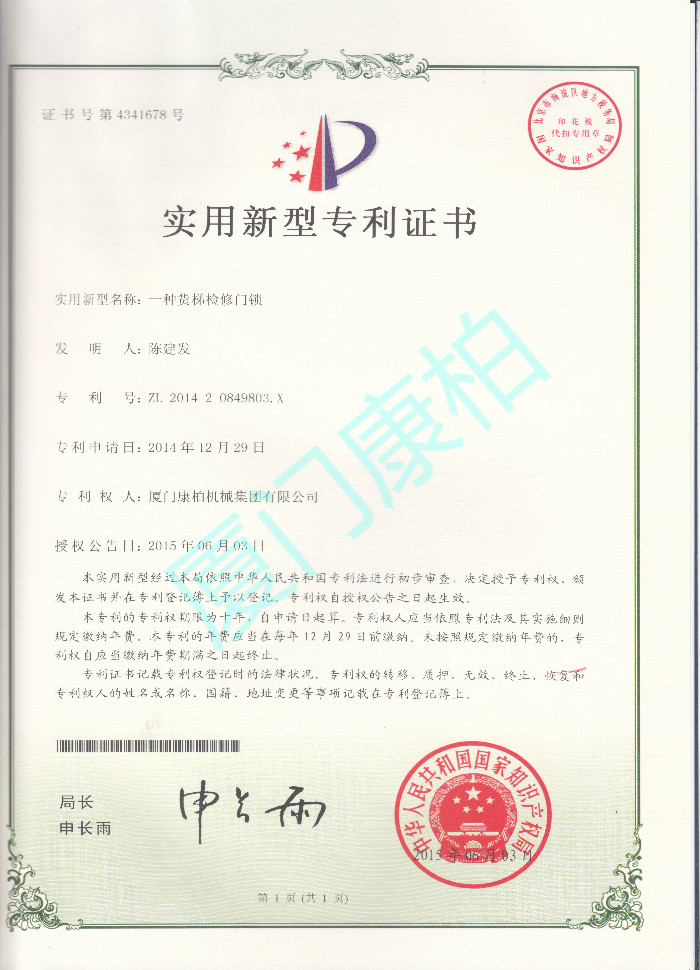 吊笼门机械锁