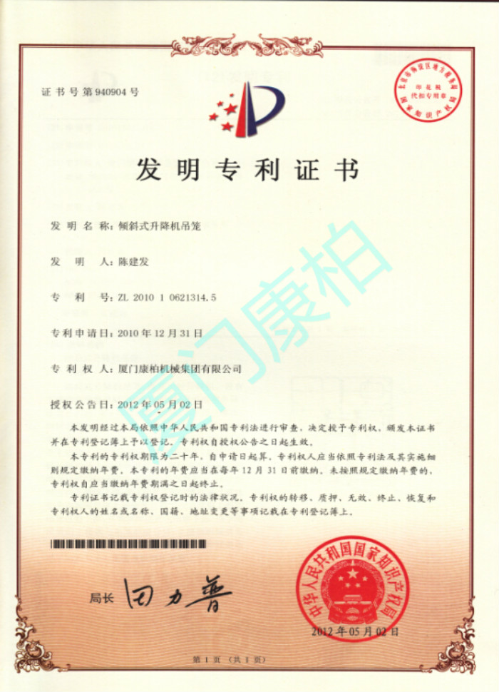 倾斜式升降机吊笼